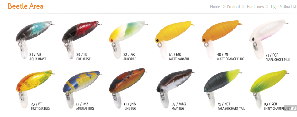 Spesso è proprio questo cibo alieno al mondo acquatico che interessa di più i pesci, probabilmente per le numerose vibrazioni che essi creano nell’acqua mentre con le numerose zampe cercano di riguadagnare la riva. Le colorazioni sono in parte completamene naturali e in parte naturali solo a metà, perché a volte occorre riuscire a stupire la trota con qualcosa di inusuale piuttosto che cercare di imitare un vero insetto al 100%. La paletta consente di recuperare quest’esca sia linearmente sia facendogli compiere movimenti frenetici e scomposti.
