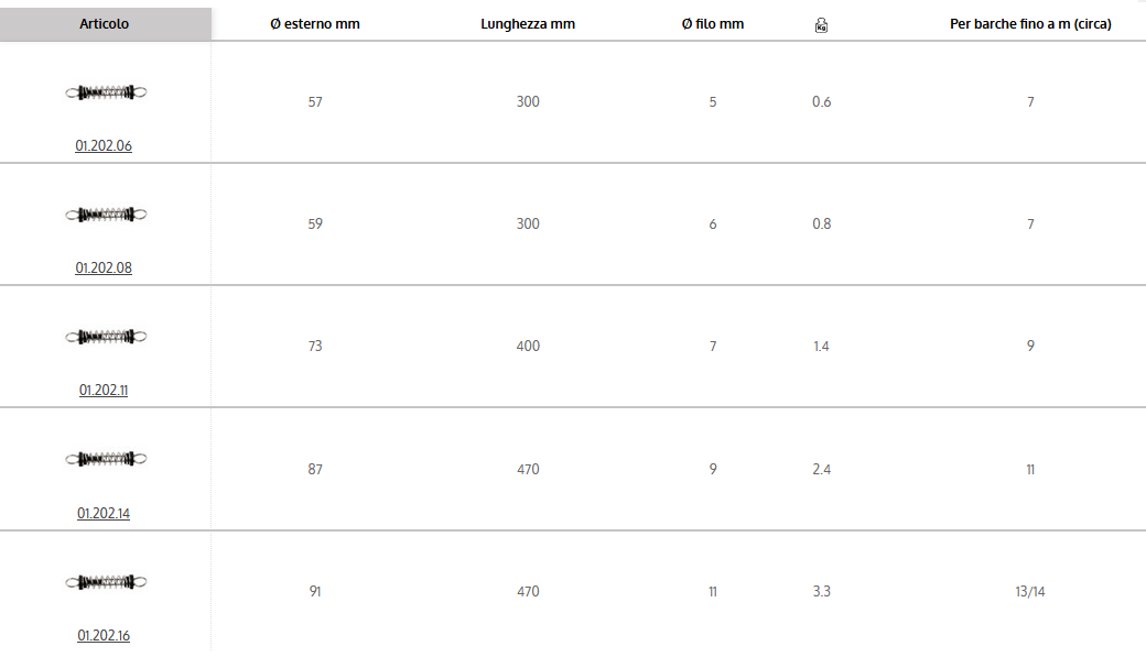 Molla ormeggio in acciaio inox lucidato con piattelli anticigolio COD 01.202.xx