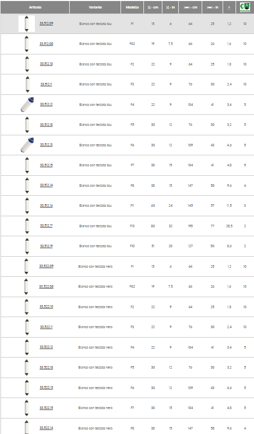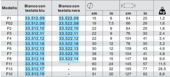 Di colore bianco con testa blu, F4 e F6 possono essere anche usati come rulli di alaggio per scafi.