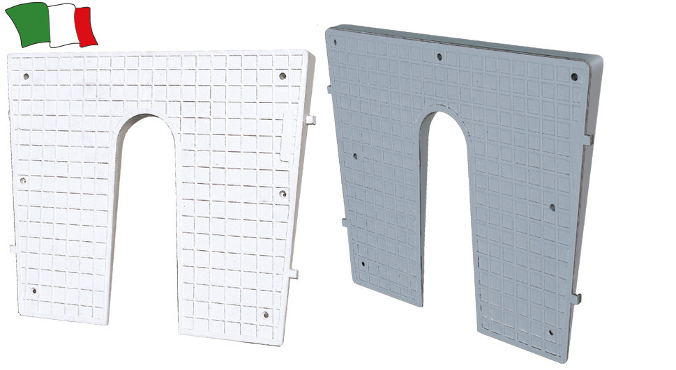 Piastra di poppa a cuneo in ABS con incavo per protezione della parte esterna dello specchio di poppa.