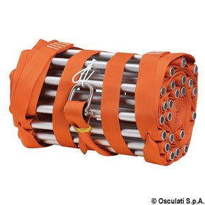 Realizzata in nastro tessile e gradini in alluminio. La scala deve essere fissata in basso alle due asole predisposte (ideale fissarla sotto l’attacco del boma) per poi tesata con una drizza; una volta ben tesata (tramite winch) la scala risulterà rigida e stabile grazie ad un sistema auto strozzante di ogni gradino. Anche se ci si sbilancia la scala rimane ferma e non gira su se stessa. La lunghezza totale della scala deve essere inferiore alla lunghezza dell'albero per dare la possibilità di tenderla al massimo. Quando la cuspide è tesata, la scala da la possibilità ad un uomo con i piedi sull'ultimo gradino in alto, di avere la testa dell'albero circa all'altezza del torace. E' comunque possibile trovare la misura corretta, agendo sulle code predisposte appunto a regolazione. Vedi istruzioni.