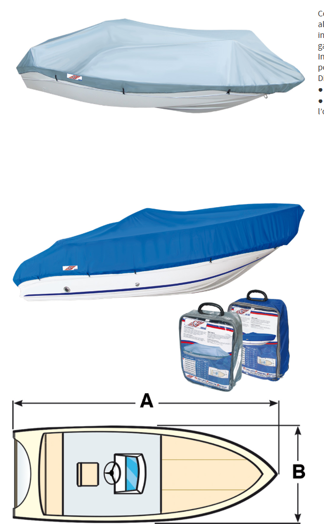 Indicato per la completa protezione dagli agenti atmosferici come pioggia, sole e polvere. Progettato inoltre per coprire anche il motore fuoribordo.